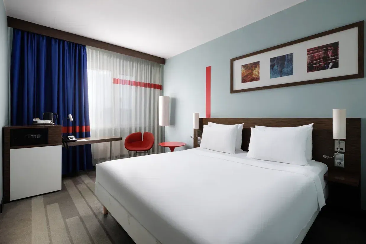 Номера категории «Стандарт» находятся на 3-5 этажах нашего отеля. Площадь каждого номера составляет 18 кв.м и вмещает до 2 гостей. Каждый номер оснащен всем необходимым для комфортного проживания: функциональной мебелью, необходимой техникой, ванными принадлежностями. Для вашего удобства мы предлагаем выбор между двумя вариантами размещения: одна двуспальная кровать, либо две односпальные. Вне зависимости от выбора вы сможете насладиться приятным отдыхом между рейсами.