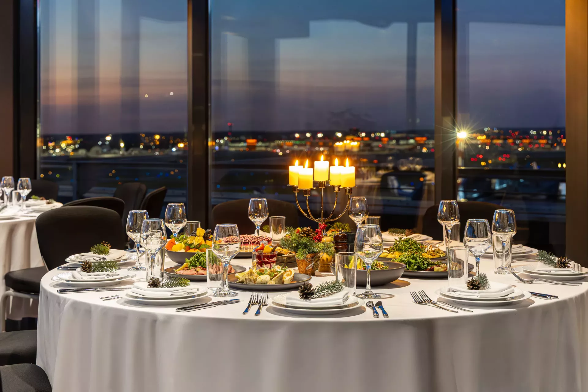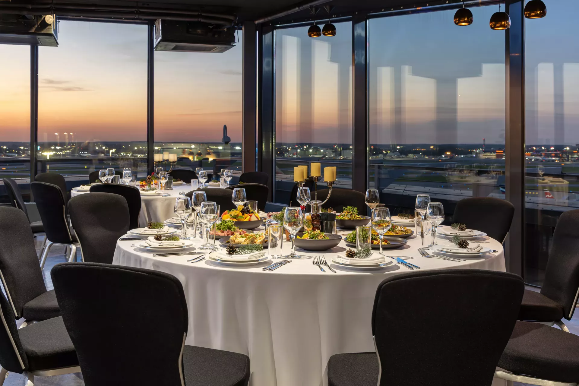 Приглашаем вас провести новогодний корпоратив в ресторане «Altitude» с панорамным видом на взлетно-посадочные полосы! У нас есть всё для незабываемого вечера: уютная обстановка, московские закаты, изысканное меню и возможность разместить до 100 человек банкетной рассадкой и 150 гостей фуршетом.